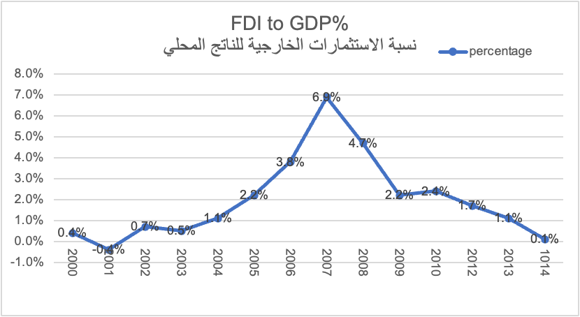 السنة  الاستثمار الأجنبي المباشرالسنة  الاستثمار الأجنبي المباشر